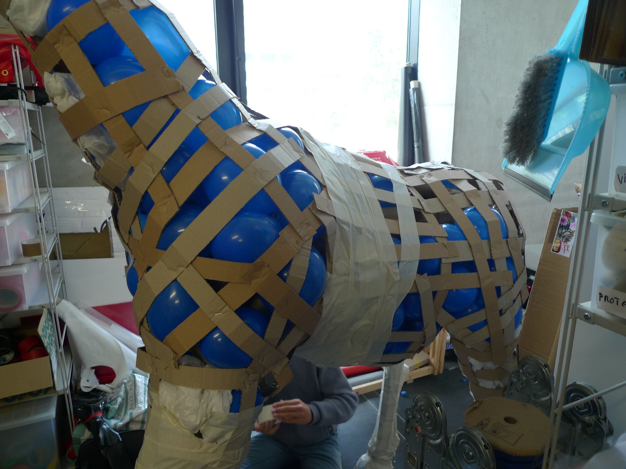 renforts du squelette de la girafe avec des ballons