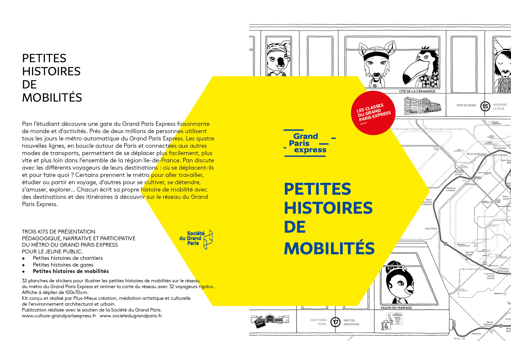 C’est à la demande de la Société du Grand Paris que +Mieux création a conçu en 2017 trois kits de présentation pédagogique, narrative et participative du métro du Grand Paris Express pour le jeune public.