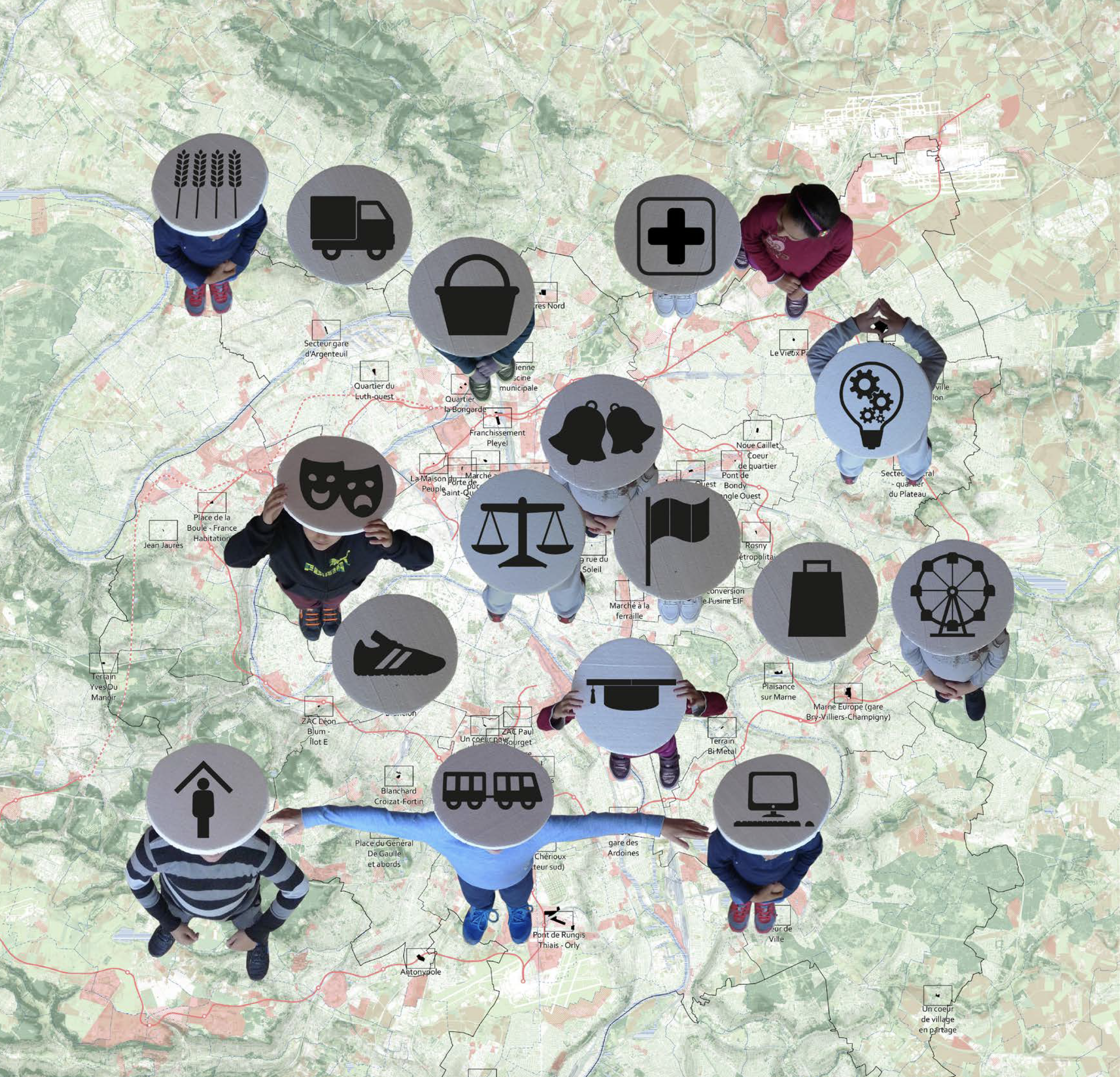 +Mieux création propose ici un atelier-spectacle participatif « Tous métropolitains ! » qui propose à chaque enfant de « personnifier » un élément de paysage, une fonction de la ville, un bâtiment emblématique, un repère, un mode de déplacement ou une activité. Positionnés sur une carte dessinée au sol et guidés par un comédien qui joue le rôle d’un metteur en scène, les enfants composent tous ensemble une représentation de la métropole. Un dispositif vidéo permet de visualiser en direct la forme urbaine réalisée par les enfants et les problématiques révélées. C’est trop serré, trop dense, il faut élargir ; c’est trop étalé, il faut se rapprocher; c’est mal connecté, il faut se relier autrement… Les enfants expérimentent ainsi différents assemblages et solutions pour répondre aux grands enjeux de développement urbain et durable de la métropole.