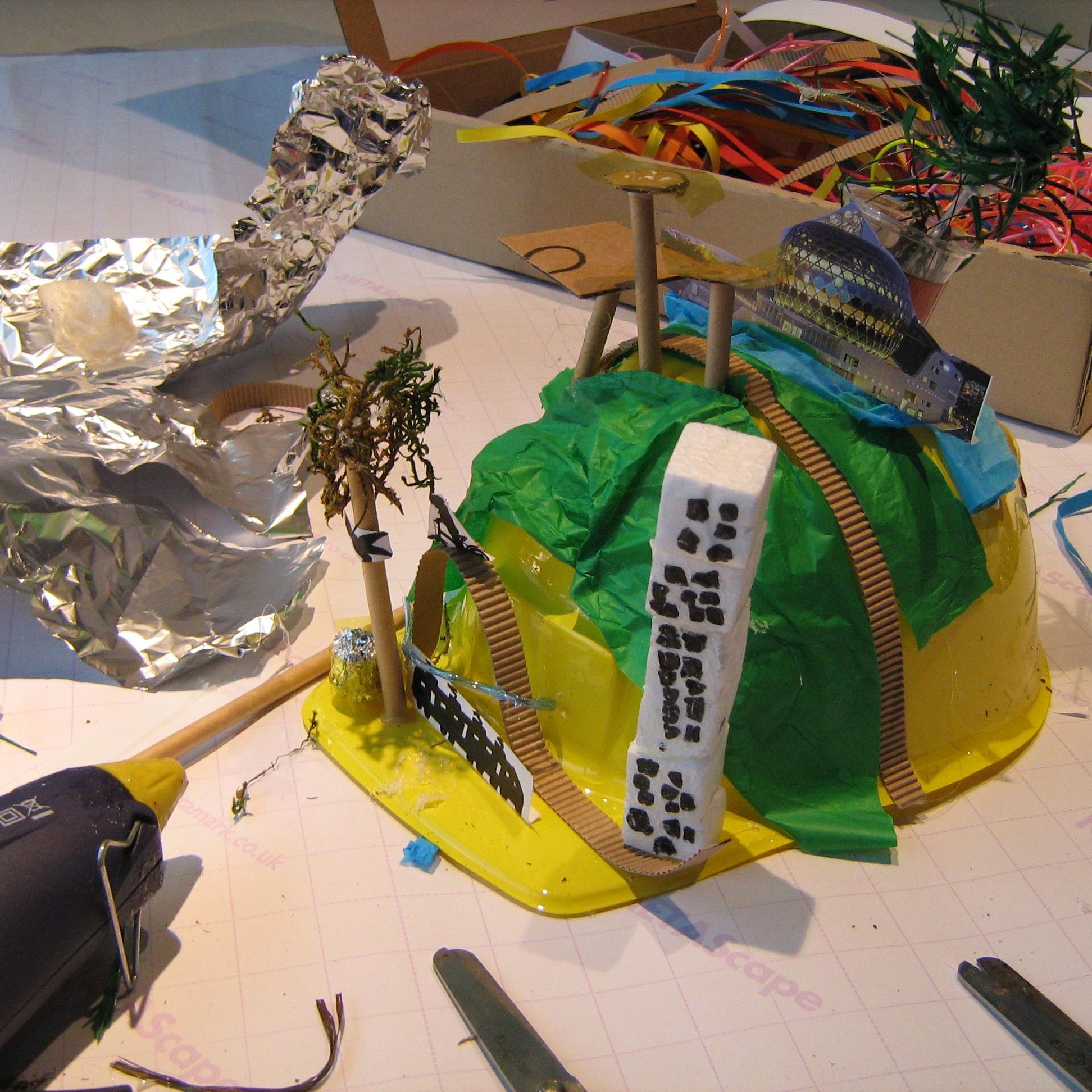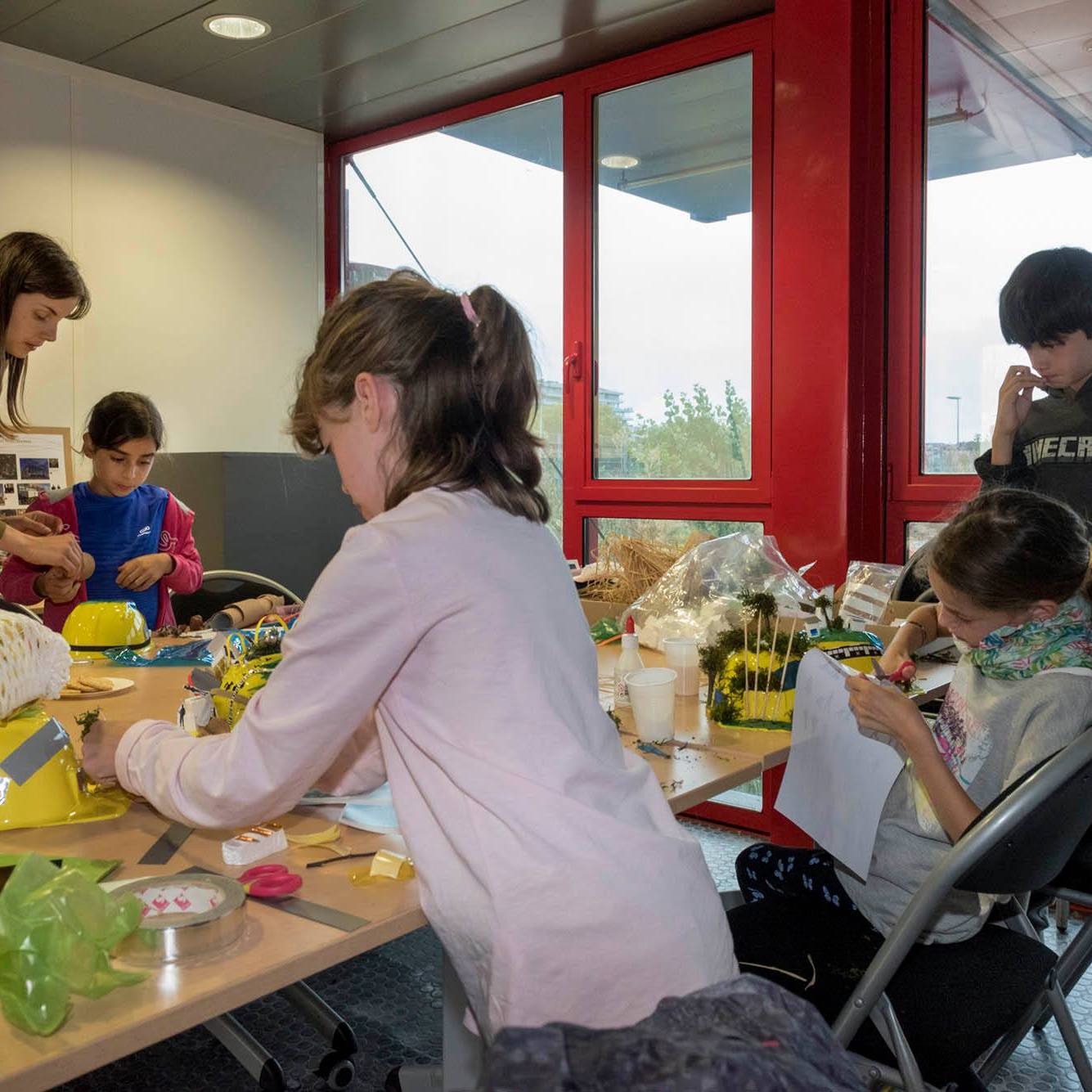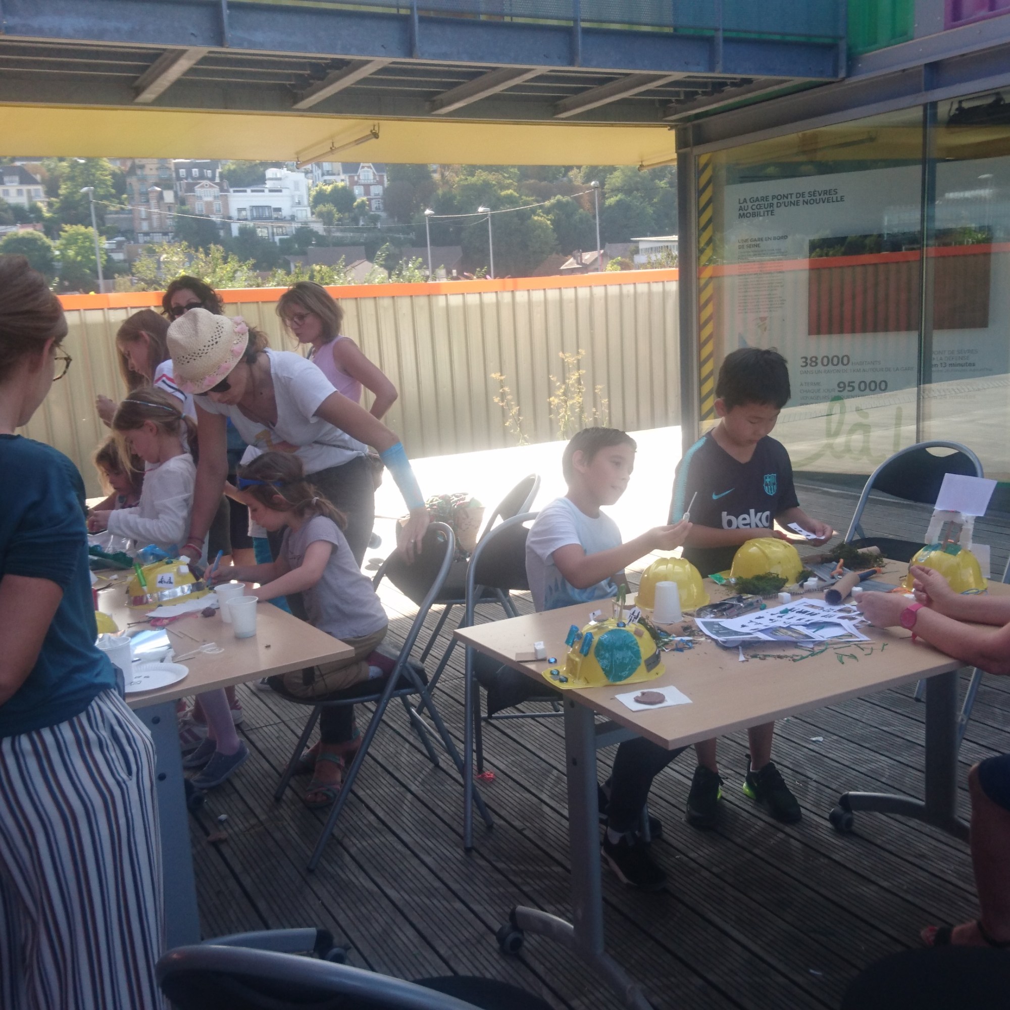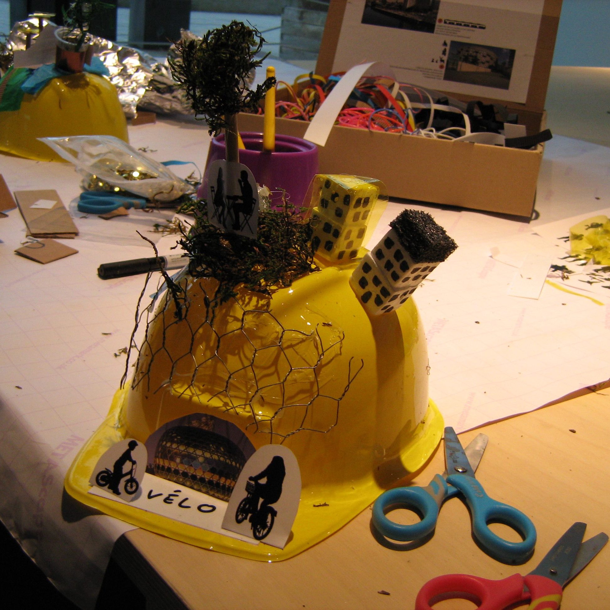 Après une petite visite de l’exposition, présentant les grandes étapes de l’évolution de ce quartier, les enfants sont invités à customiser un casque de chantier en le transformant en véritable sculpture, symbole du quartier, avec tous les éléments de son patrimoine paysager et architectural. En associant des représentations des architectures fortes du quartier, à de la végétation et des éléments de personnalisation, chaque enfant fabrique une véritable « coiffe » représentative du quartier.