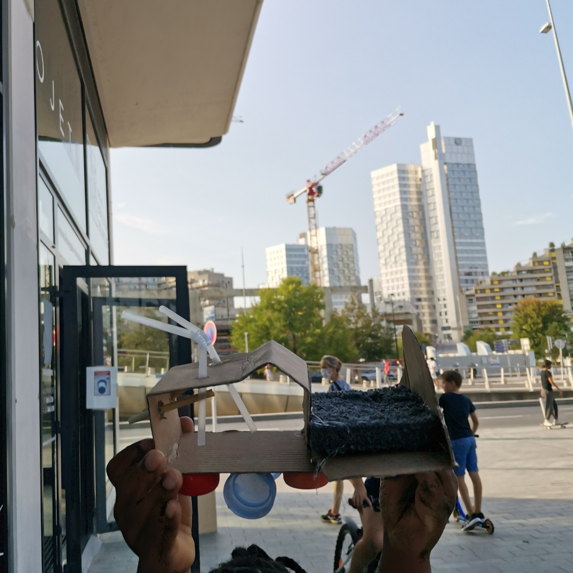 Après une promenade dans le Pavillon des Projets pour découvrir l’histoire du quartier Rives de Seine-Ile Seguin et ses grands enjeux de développement, les enfants sont invités à construire une maquette-carrousel pour voyager dans le quartier à travers les époques.