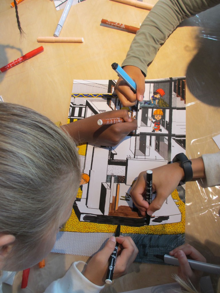 Qui fait quoi, dans quel ordre, avec quels outils… ? Et quels sont les chantiers en cours ? Autant de questions auxquelles cet atelier apportera des réponses, compilées par les enfants sur une fresque collective des étapes et métiers du chantier.