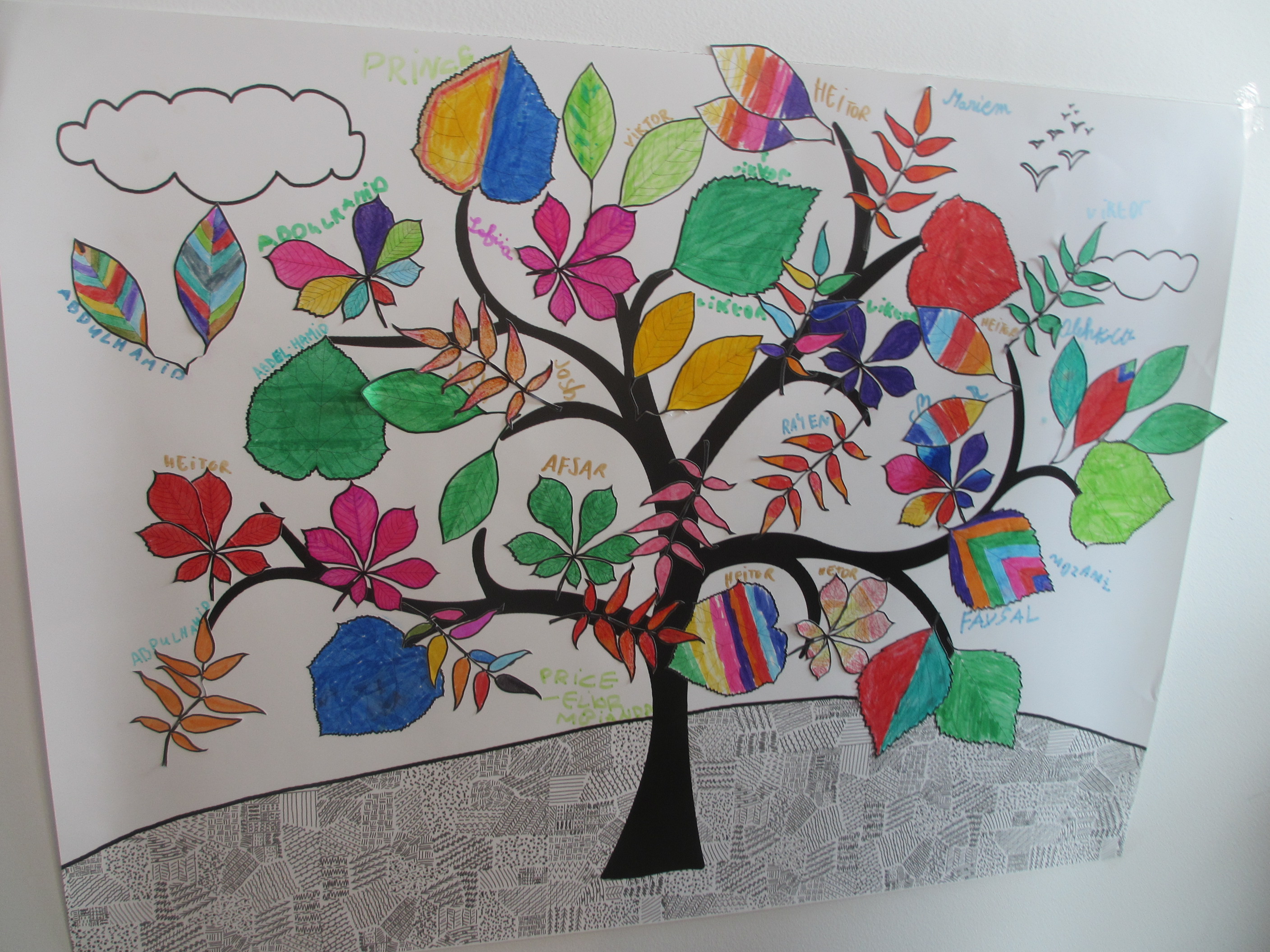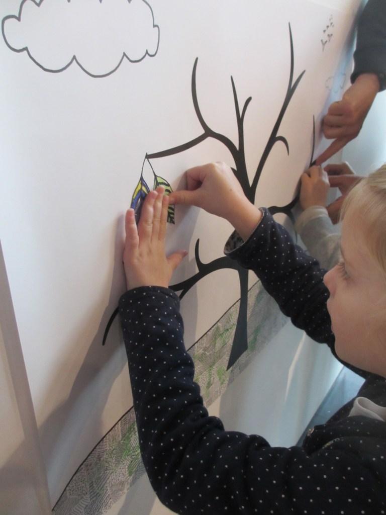 En s’inspirant des essences d’arbres présentes dans le parc, les enfants réalisent ensuite leur propre arbre aux mille feuilles… de papier.