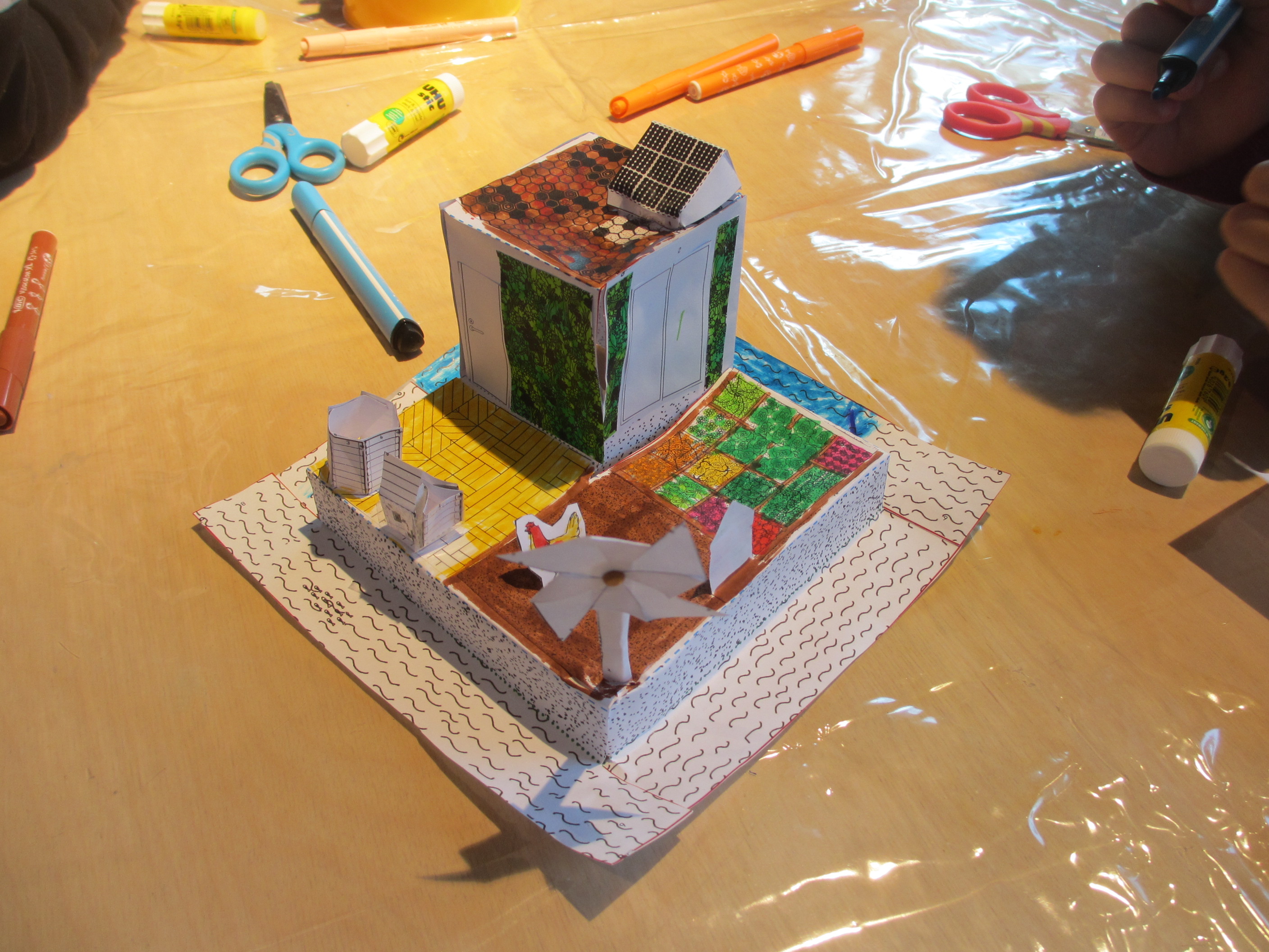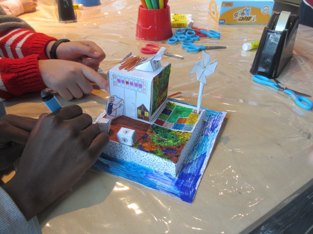 Après avoir découverts ces différents systèmes, les enfants fabriquent la maquette d’un petit habitat qui produit ses propres énergies renouvelables.