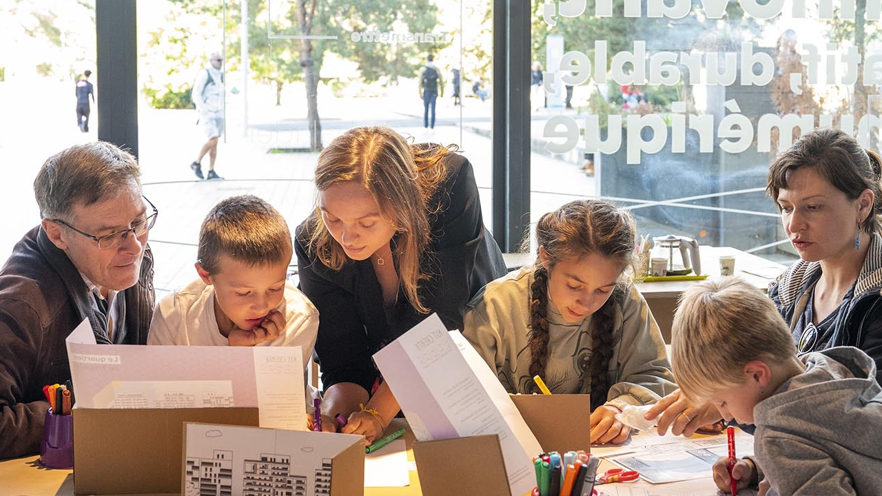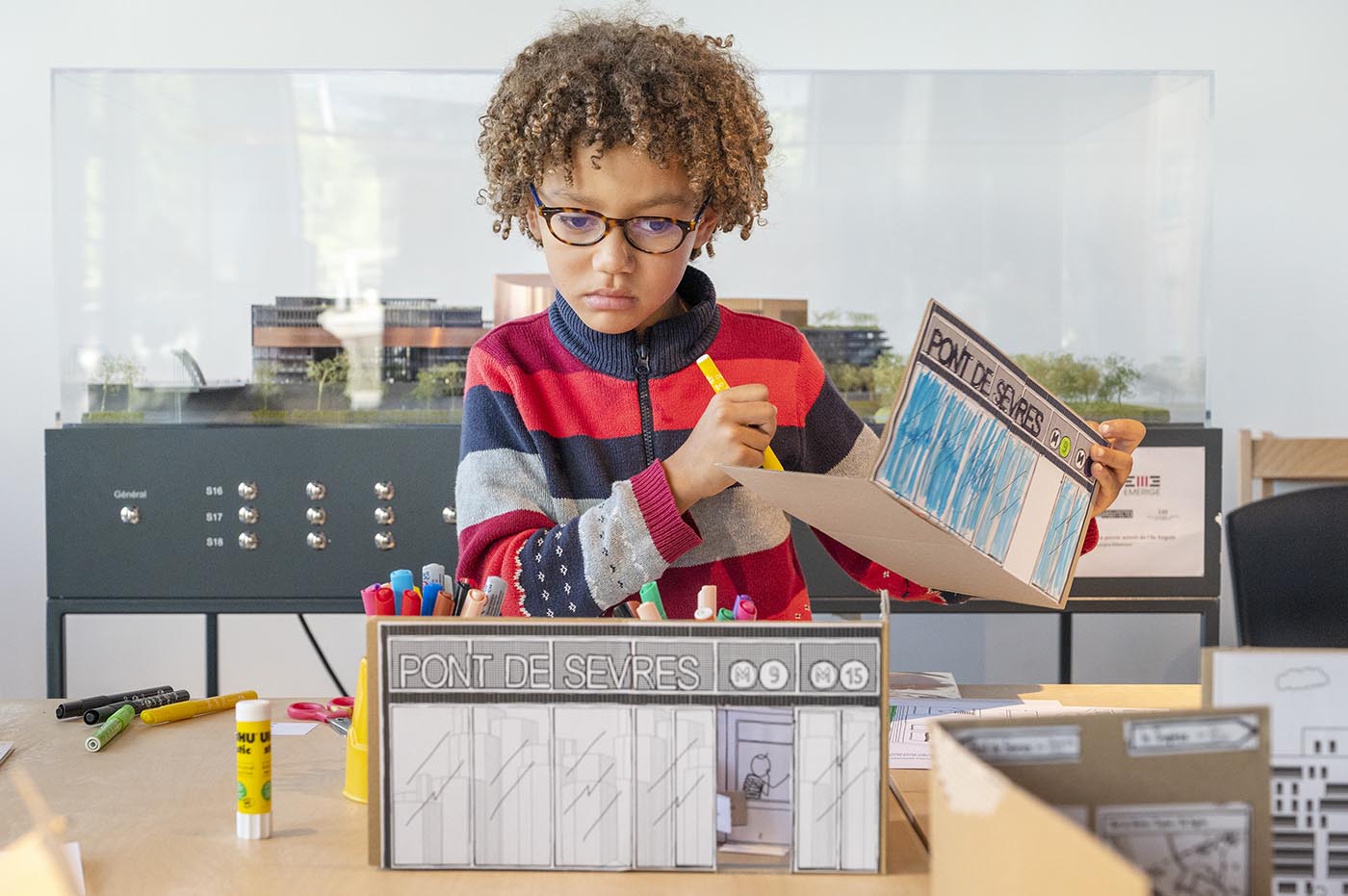 En 2022-2023, +Mieux création continue à proposer des ateliers aux familles et aux groupes dans le Pavillon des Projets du site en pleine mutation Quartier du Trapèze – Ile Seguin à Boulogne-Billancourt.