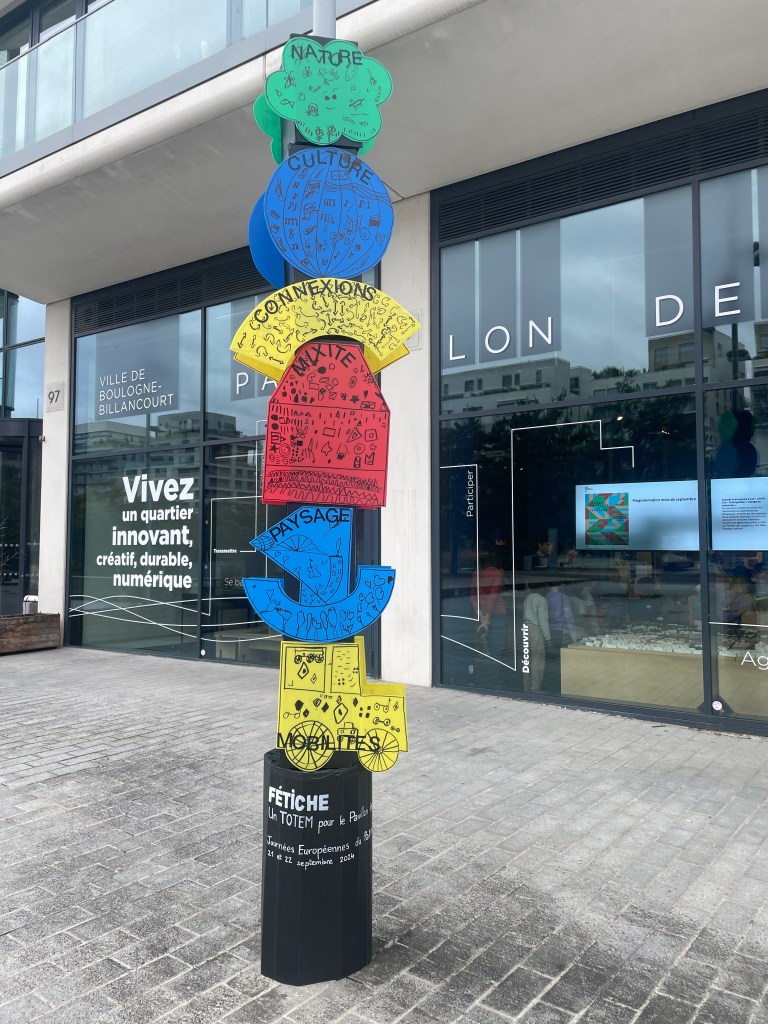 Munis de grandes formes colorées qui évoquent les marqueurs forts du quartier (la Seine, le Parc, les architectures remarquables), venez nous aider à construire et customiser un totem unique et joyeux !
