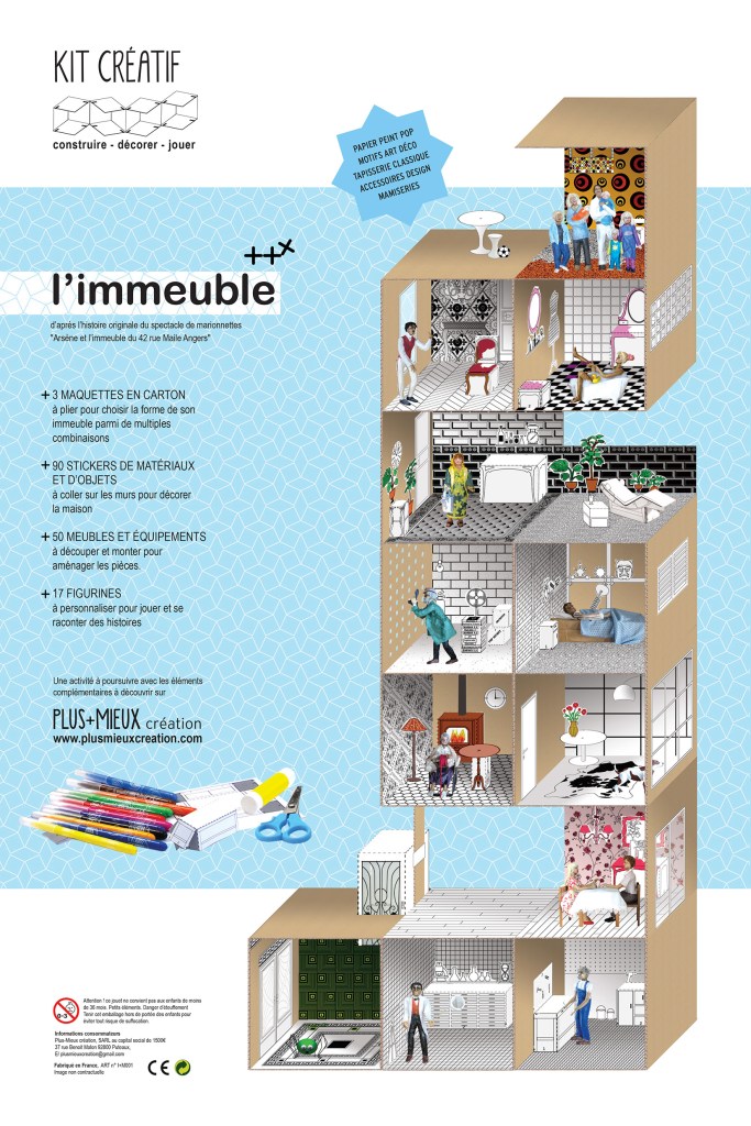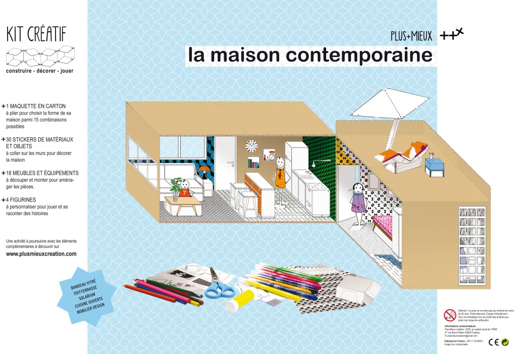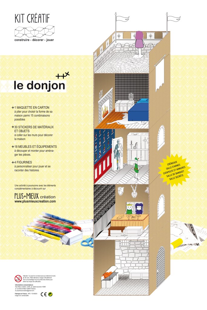Immeuble écologique ou maison contemporaine, château de chevalier ou palais de princesse, base secrète de super-héros… pour chaque univers les kits créatifs proposent une maquette à plier pour choisir la forme de son habitat parmi 15 combinaisons possibles, des dizaine de stickers de décoration, des meubles et figurines papier à personnaliser pour créer soi-même le décor de ses histoires.